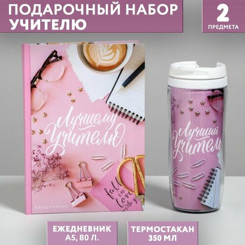 Подарочный набор «Лучший учитель»: ежедневник А5, 80 листов, термостакан 350 мл