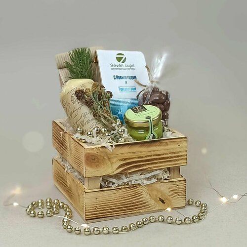 Набор в подарок к Новому году: свеча, мед, орехи, чай
