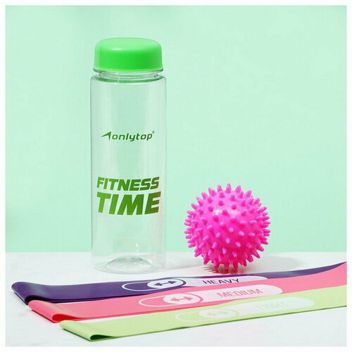 Цены на Набор ONLYTOP, для фитнеса "Россия": 3 фитнес-резинки, бутылка для воды, массажный мяч, разноцветный микс, разноцветный в г. Москва