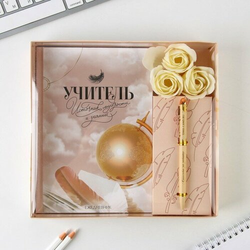 Подарочный набор «Учитель - источник мудрости»: ежедневник А5, 80 листов, ручка шариковая металл 0,8 мм, мыльные лепестки