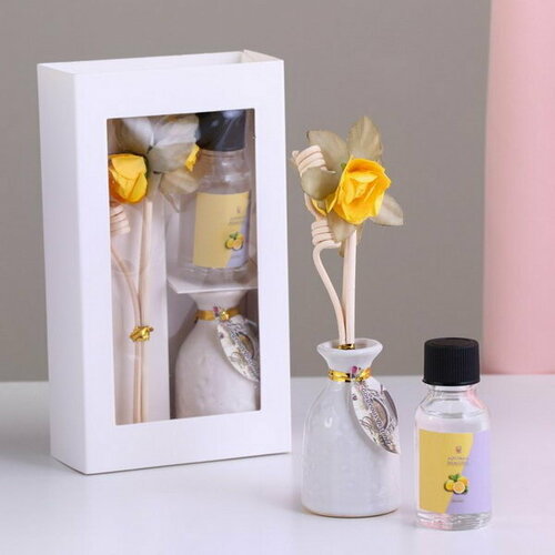 Набор подарочный с диффузором "Ваза с цветком" лимон