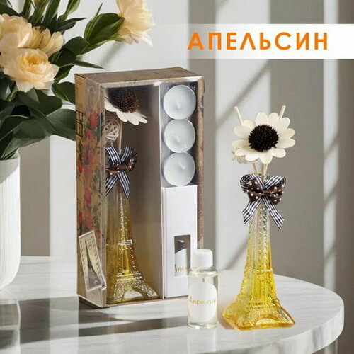 Богатство Аромата Набор подарочный "Париж": ваза, свечи, аромамасло апельсин, декор, "Богатство Аромата"