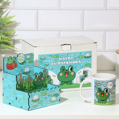 Подарочный набор "Выпускнику школы!" органайзер, кружка, цвет, лягушка 9694418