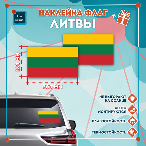 Наклейка Флаг Литвы на автомобиль, кол-во 2шт. (300x180мм), Наклейка, Матовая, С клеевым слоем
