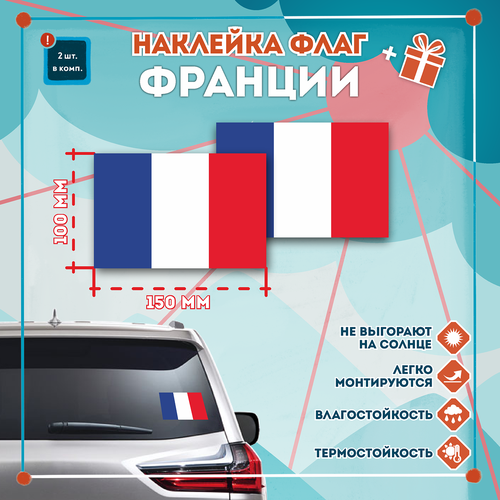 Наклейка Флаг Франции на автомобиль, кол-во 2шт. (150x100мм), Наклейка, Матовая, С клеевым слоем