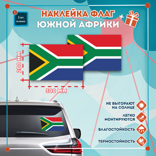 Наклейка Флаг Южной Африки на автомобиль, кол-во 2шт. (300x200мм), Наклейка, Матовая, С клеевым слоем