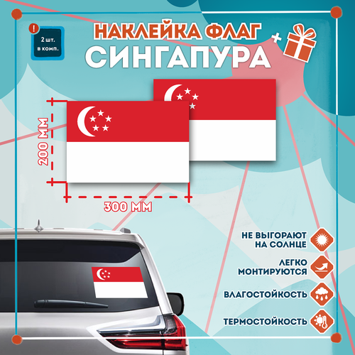 Наклейка Флаг Сингапура на автомобиль, кол-во 2шт. (300x200мм), Наклейка, Матовая, С клеевым слоем