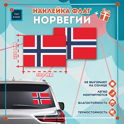 Наклейка Флаг Норвегии на автомобиль, кол-во 2шт. (300x220мм), Наклейка, Матовая, С клеевым слоем