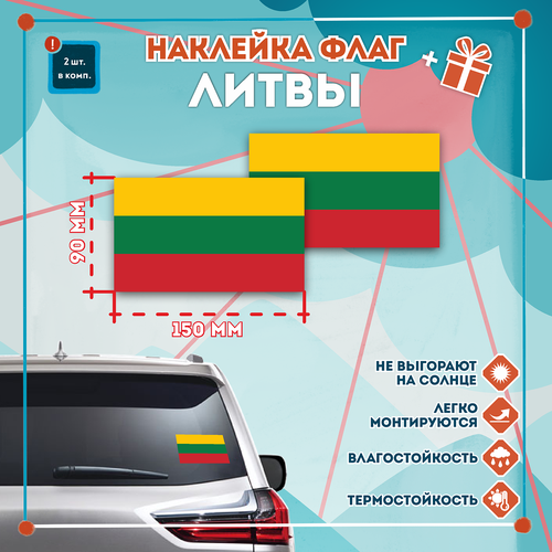 Наклейка Флаг Литвы на автомобиль, кол-во 2шт. (150x90мм), Наклейка, Матовая, С клеевым слоем