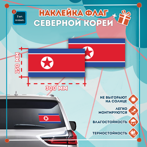 Наклейка Флаг Северной Кореи на автомобиль, кол-во 2шт. (300x150мм), Наклейка, Матовая, С клеевым слоем