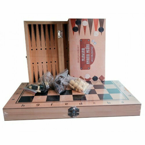 Игра 3 в 1 дерево (нарды, шашки, шахматы) (34х17х3.5 см) фигуры-дерево в коробке (Арт. AN02594)