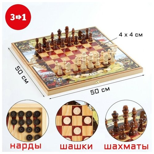 Настольная игра 3 в 1 "Куликовская битва": шахматы, шашки, нарды, доска 50 х 50 см
