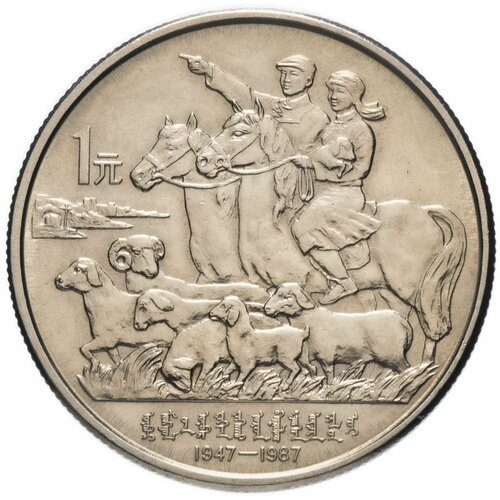 Монета 1 юань 40 лет автономному региону Внутренняя Монголия. Китай 1987 UNC