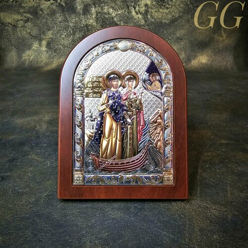 Икона покрыта слоем чистого серебра 999 пробы. С помощью современных технологий изделию придается особая рельефность и выразительность. Икона изготовлена из металлической пластины Miro Silver, нижний слой которой состоит из аллюминия, а верхний – из серебра. Деревянная основа иконы изготавливается из наиболее ценных пород лиственных деревьв. Дерево окуме и ореховое дерево отличаются благородным цветом и фактурой. Защита от царапин и потери блеска