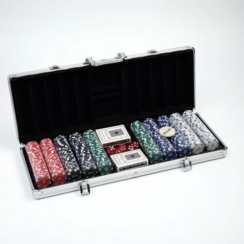 Набор для покера в кейсе, 500 фишек с номиналом (55 х 20 х 7 см)