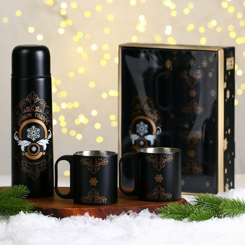 Подарочный набор "Зимние узоры", термос 500 мл, кружка 2 шт