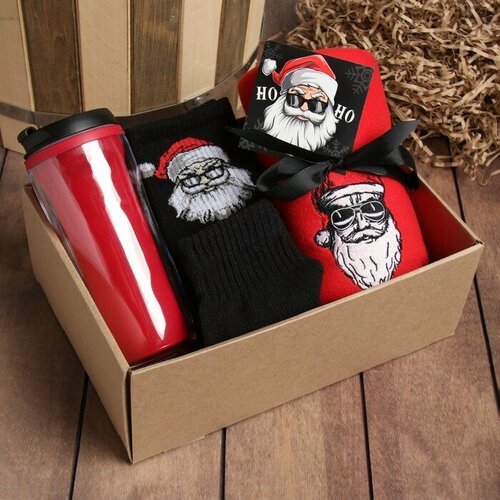 Набор подарочный "Ho-ho" плед, носки, перчатки, термостакан