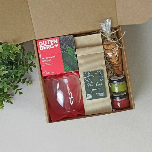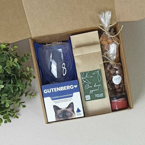 Подарочный набор с бокалом, чаем, медом, орехами