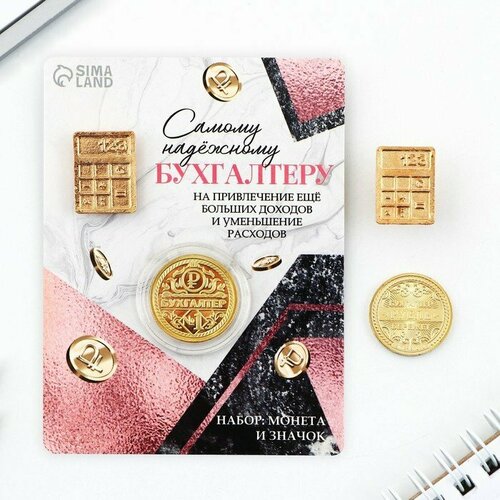 Набор монета и значок "Самому надежному бухгалтеру", 7.5 х 10 см (комплект из 12 шт)