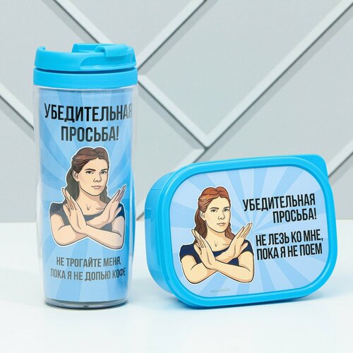 Подарочный набор «Убедительная просьба»: термостакан 350 мл, ланч-бокс 500 мл
