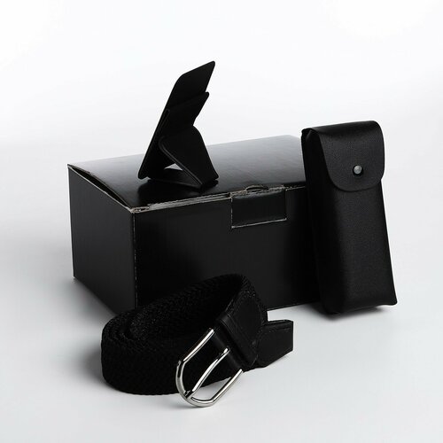 Подарочный набор, плетёный ремень, футляр для очков, картхолдер на телефон, цвет чёрный