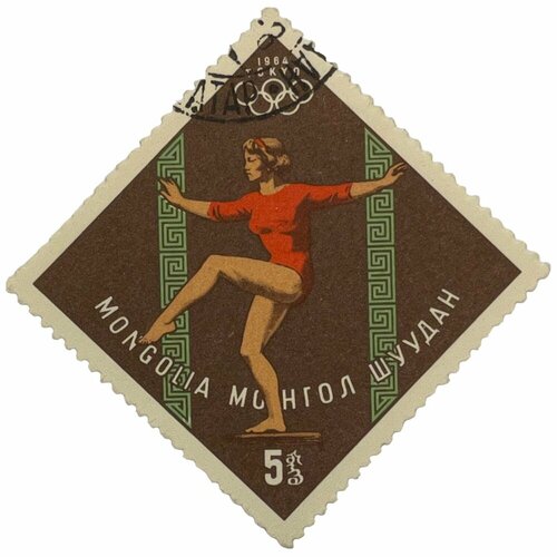 Почтовая марка Монголия 5 мунгу 1964 г. Гимнастка на бревне. Серия: Летние олимпийские игры, Токио(2)