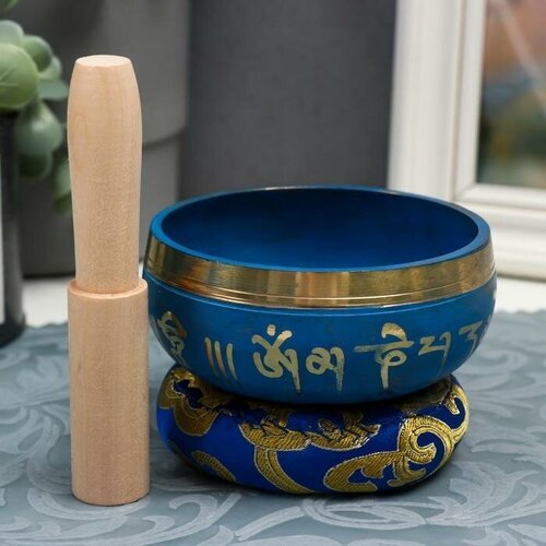 Поющая чаша металл "Медитация" синяя с резонатором и подушечкой 4,2х9,5х9,5 см