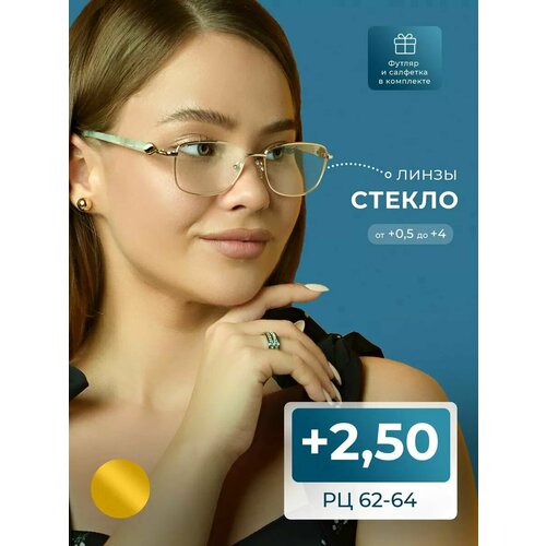 Женские очки для чтения со стеклом (+2.50) с футляром, GLODIATR 2031 C1, линза стекло, РЦ62-64 Glodiatr