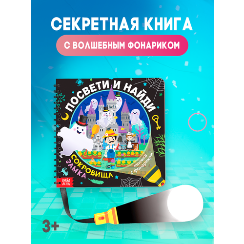Книга игра, БУКВА-ЛЕНД "Посвети и найди. Сокровища замка", книжка с фонариком, интерактивная, для детей и малышей Буква-Ленд