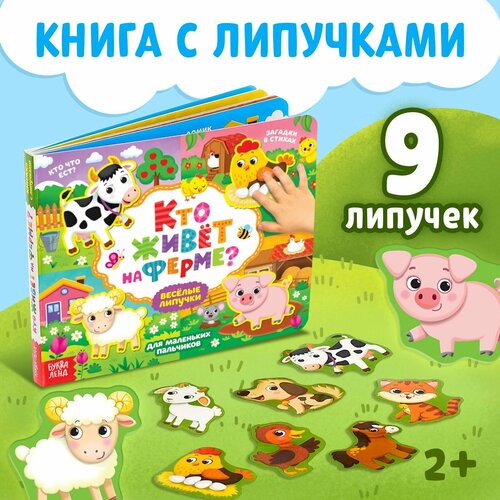 Книга с липучками БУКВА-ЛЕНД "Кто живёт на ферме?", развивающая , 12 страниц Буква-Ленд