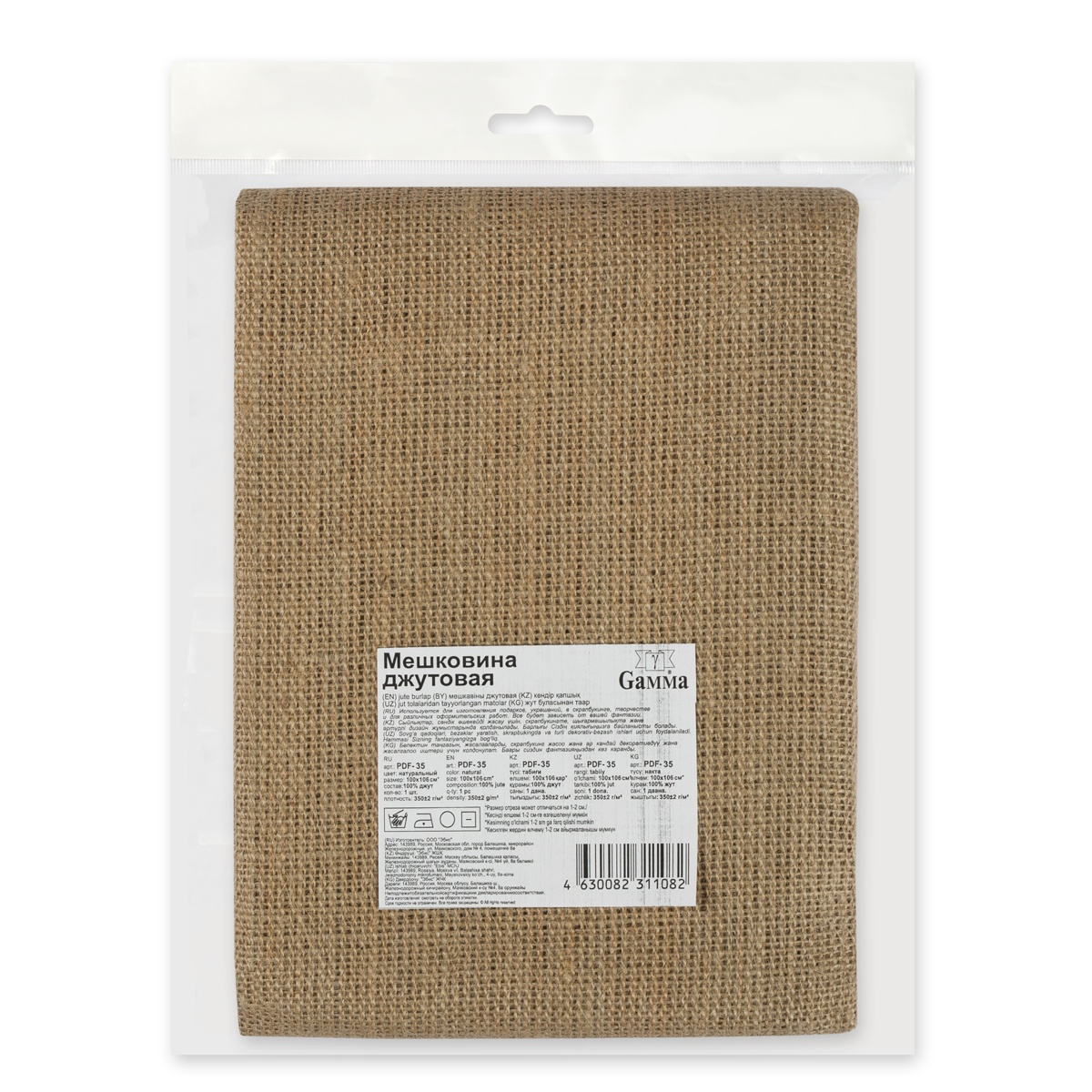 Ткань упаковочная Gamma мешковина, 350+-2 г/м2 100х106 см, 100% джут, натуральный (PDF-35) 100059374716