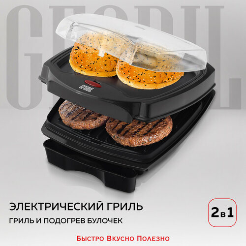 GFGRIL Электрический гриль GF-120, с отсеком для подогрева булочек, антипригарное покрытие.