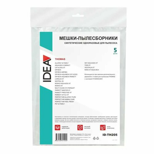 Сменные запасные прочные одноразовые мешки для пылесосов борк серии V7D1. Учитывайте при выборе, что мешочек для сбора пыли и мусора не универсальный, а подходит для конкретных определенных моделей: BORK V700, V701, V702, V703, V705, V7010, V7011, V7012, V7013, VC9721, VC9821, VC9921. Комплект пылесборников состоит из 8 штук. Аналог артикула М-56 от популярного производителя OZONE. Мешок для пылесоса Борк является важной частью, от него зависит, насколько долго прослужит Ваша техника, пропускает ли пилесборник для пылесоса пыль и мелкие частицы мусора. Одноразовые синтетические мешки пыле-сборники для пылесоса борк производителя IDEA - это отличное и недорогое решение для поддержания чистоты в Вашем доме, они не уступают по качеству мешкам от Filtero, Vesta, Euroclean, Topperr, Zoom, Rock, Rocstar или Ozone (производятся на одном предприятии). Так как они очень прочные и состоят из многослойного нетканого материала (три фильтрующих слоя), устойчивы к острым предметам, надежно удерживают пыль и грязь, в отличи