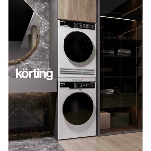 Korting комплект для установки в колонну Стиральная машина KWM 58ILS1299 + Сушильная машина KD 60L97 + Соединительный элемент с выдвижной полкой