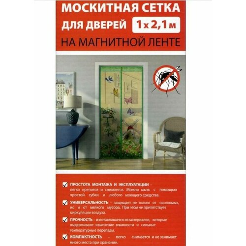Сетка антимоскитная на магнитах 100х210см Бабочки (кноп. 10шт) на двери