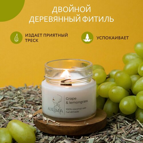 Лемонграсс и Виноград/Lemongrass and Grape 100ml / Ароматическая свеча из кокосового воска с деревянным фитилем