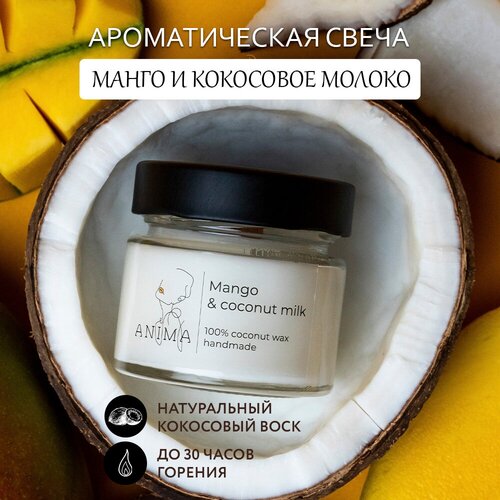 Манго и кокосовое молоко / Mango and Coconut Milk 100ml / Ароматическая свеча из кокосового воска с деревянным фитилем