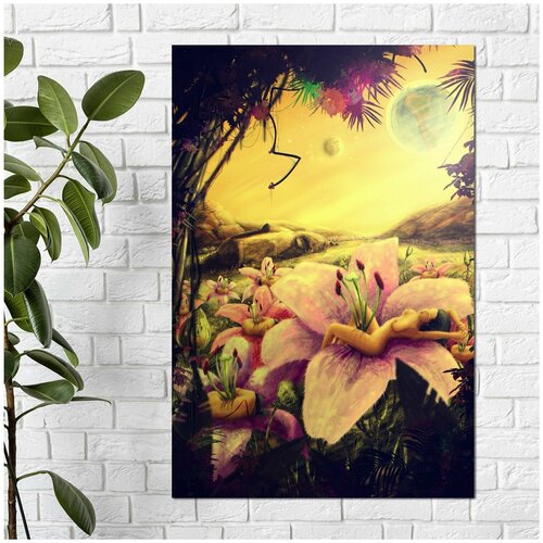 Картина на Дереве - "Цветы Марса", размер 60х40 см