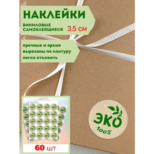 Наклейки круглые виниловые самоклеящиеся "Эко", крафт, размер 3,5х3,5 см, 60 стикеров для декора и упаковки