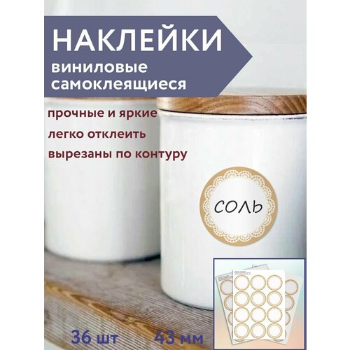 Наклейки на банки и упаковку, 36 шт виниловые самоклеящиеся круглые(рисунок кружево)