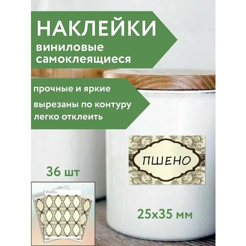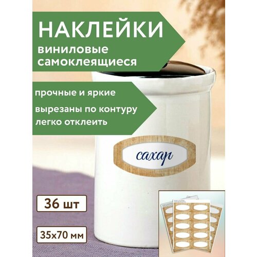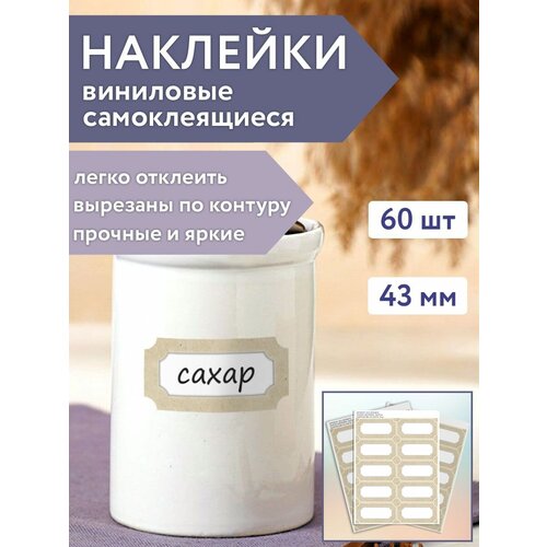 Наклейки на банки для хранения и упаковку, 30 шт виниловые (рисунок крафт), 35х70 мм