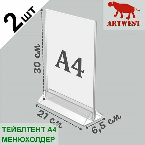 Тейблтент менюхолдер А4 (2 шт) прозрачный эконом с защитной пленкой Artwest