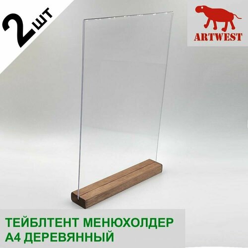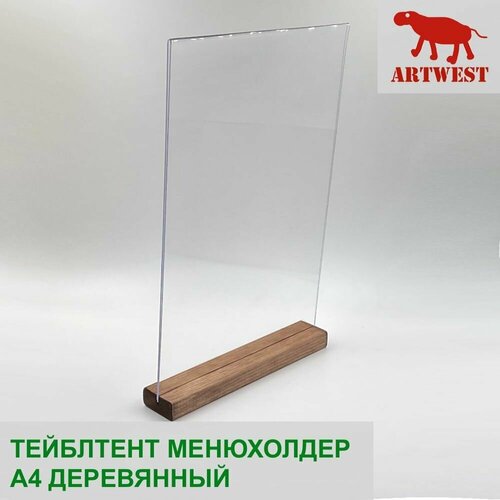 Тейблтент менюхолдер А4 прозрачный на деревянном основании с защитной пленкой Artwest / тейбл тент двусторонний
