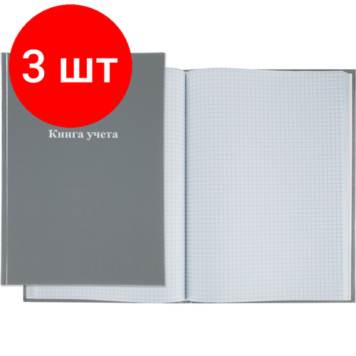 Комплект 3 штук, Книга учета Attache А4 96л в клетку блок офсет, бумвинил серый