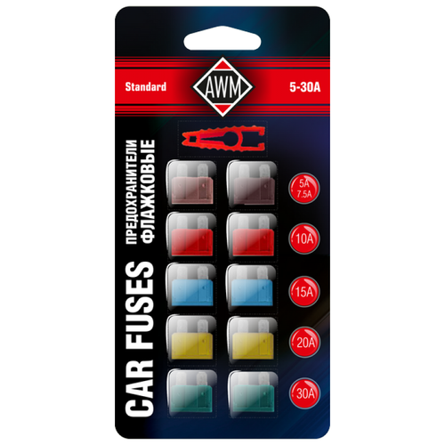 AWM 420000001 Предохранители 2110 н/о "AWM" (10 шт, 1х5А, 1х7,5А, 2х10А, 2х15А, 2х20А, 2х30А) с пинцетом 1шт