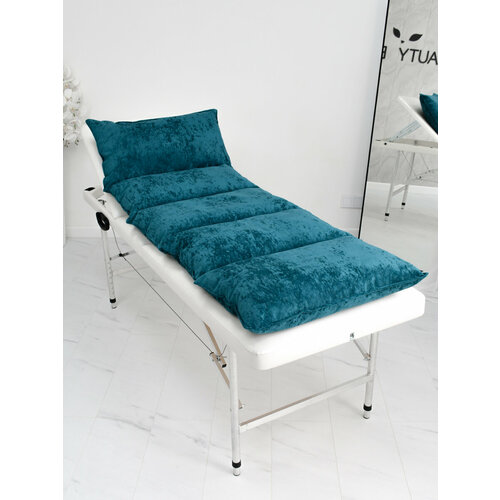 Матрас на кушетку для наращивания ресниц, матрац лешмейкера, анатомический, плюшевый, темный циан