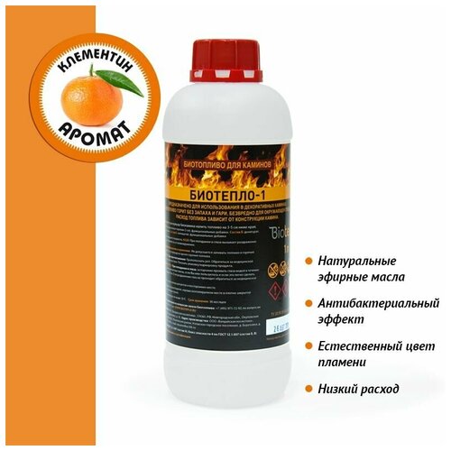 Биотопливо для биокаминов Биотепло-1, с ароматом клементинов 1 литр