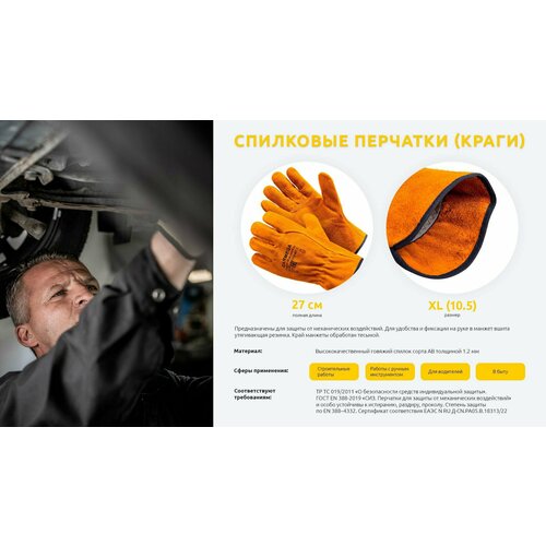 Перчатки защитные спилковые CARMEGA Optima Краги рабочие размер 10,5