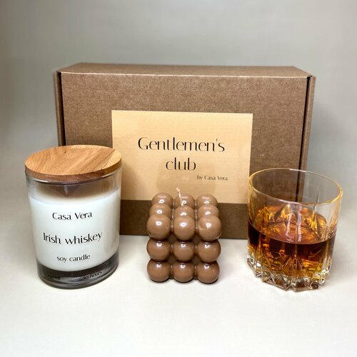 Подарочный набор для мужчины «Джентльменский клуб»: аромасвеча «Ирландский виски», интерьерная свеча-бабл, брендированные спички, подарочная коробка