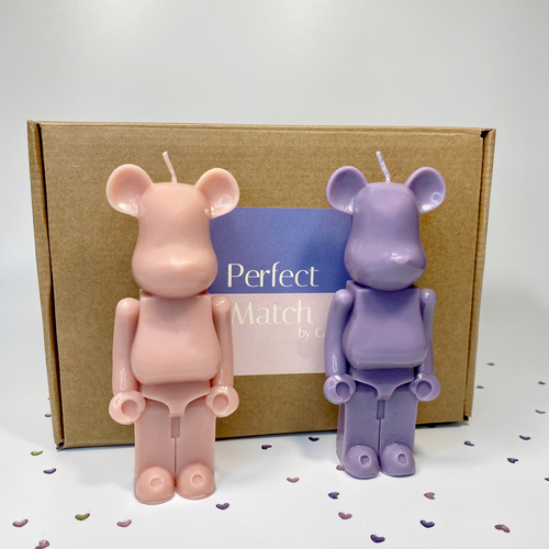 Подарочный набор свечей Идеальное совпадение" (Perfect Match), цвет розовый + фиолетовый // Подарок паре, семье // Подарок любимому, любимой // Свечи декоративные Bearbrick // Мишки Bearbrick